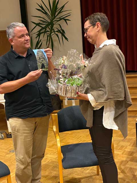 Ingrid Camatta (li.) und Manuela Gäbler(re.) bedanken sich bei Marion Kleine,